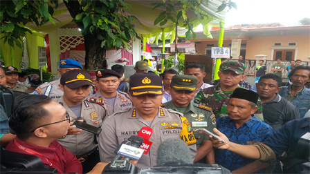 “Kita terjunkan 600 personil gabungan dari Kepolisian, TNI, dan unsur Pemerintahan Daerah, jumlah itu kita sesuaikan dengan jumlah TPS yang ada, yaitu sebanyak 15 TPS,” ujar Kapolres, saat di temui di TPS 4, Desa Babakan Asem, Rt 002/007, Kecamatan Teluk Naga, Kabupaten Tangerang.