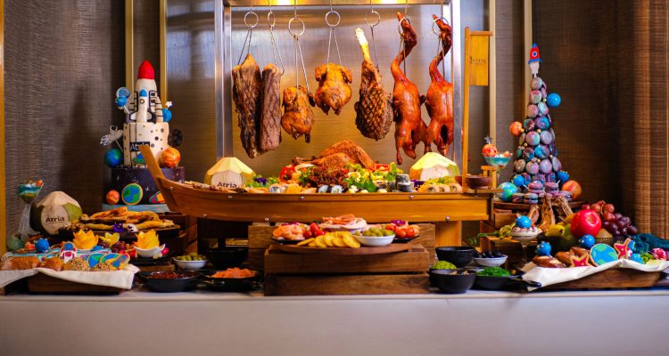 Executive Chef Hidayat memperkenalkan konsep buffet istimewa bertema “Diversity of Taste in The Universe” dengan menghadirkan 17 stall hidangan internasional. Beberapa menu unggulan meliputi: Roasted Turkey, Beef Tomahawk, Live cooking pasta with wheel cheese, Sushi bar, Dessert spesial bertema galaxy.