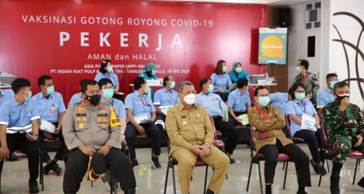 Pelaksanaan Vaksinasi Gotong Royong selain dilaksanakan di Marunda juga dilakukan di PT Indah Kiat Pulp & Paper, Tbk Tangerang Mill di bawah naungan Asia Pulp & Paper (APP) Sinar Mas.