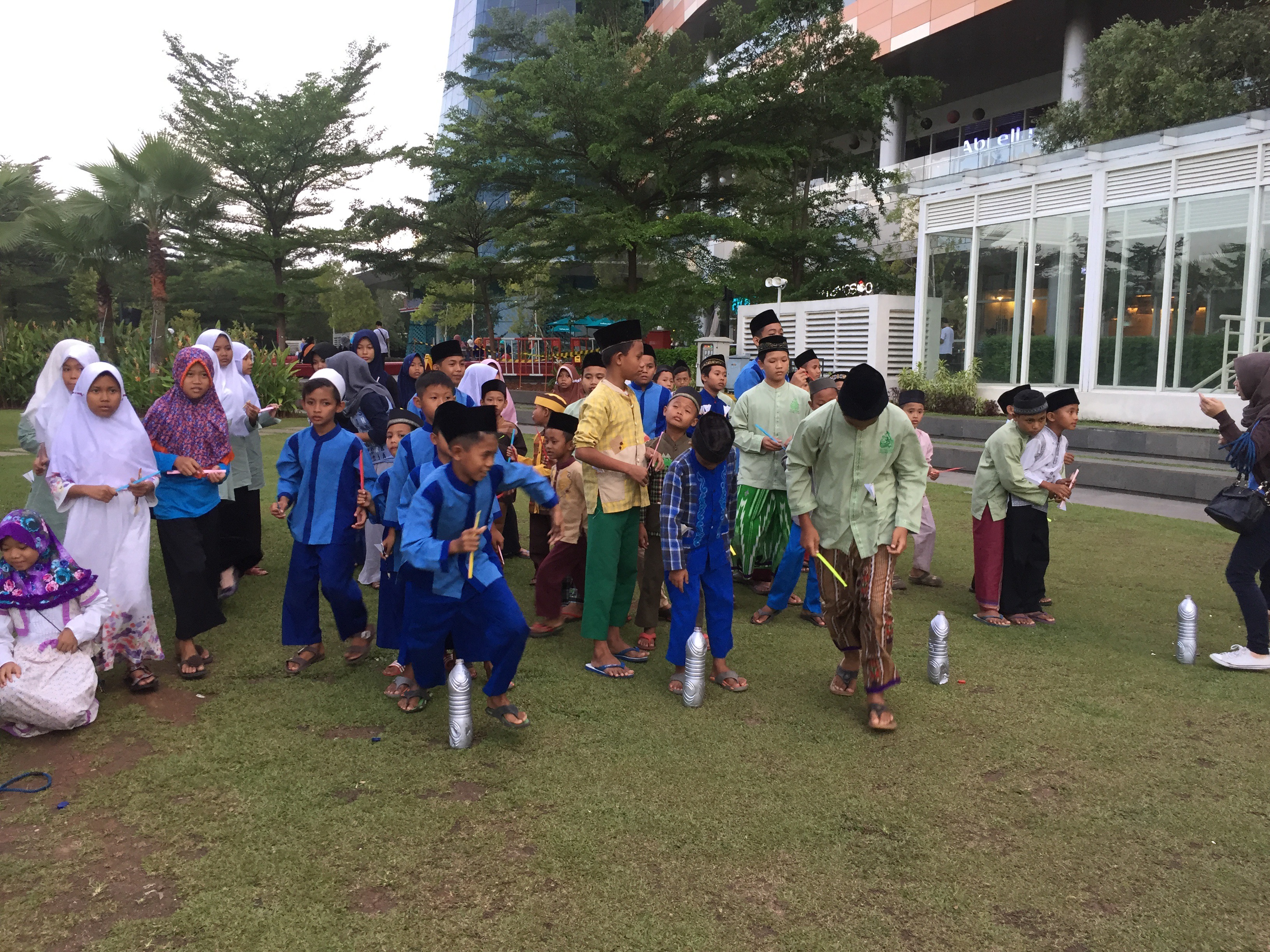 BESTTANGSEL.COM, Tangerang Selatan – Bertempat di taman videotron Mall Bintaro Jaya Xchange (BXc), puluhan anak tampak asik belajar dan bermain. Mereka adalah anak-anak yatim yang berasal dari lingkungan sekitar, mereka sengaja diundang oleh managemen BXc untuk memeriahkan bulan Ramadan 1438 H.