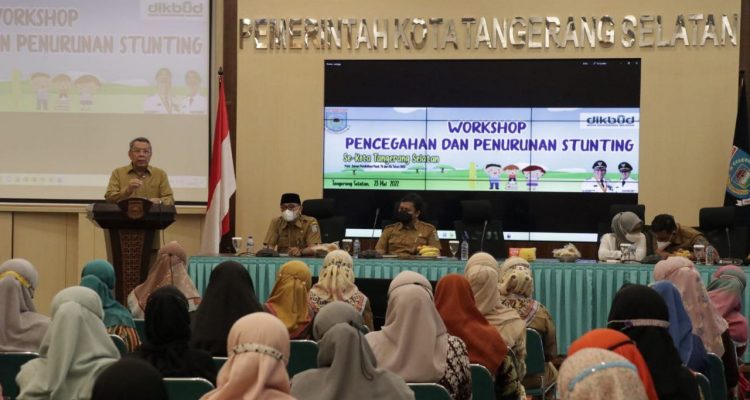 BESTTANGSEL.COM, CIPUTAT- Wali Kota Benyamin Davnie membuka kegiatan workshop dengan tema “Pencegahan dan Penurunan Stunting di Tangerang Selatan. Bertempat di Aula Blandongan, Senin (23/5).