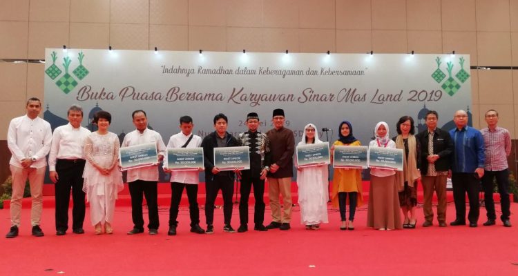 BESTTANGSEL.COM, TANGERANG -Untuk yang ke tiga kalinya Sinar Mas Land memberangkatkan enam orang karyawannya melakukan ibadah umrah. Penyerahkan secara simbolis paket umrah senilai Rp.30 juta rupiah kepada enam karyawan beruntung tersebut pada 24 Mei 2019 dilakukan bersamaan dengan digelarnya buka puasa bersama karyawan Sinar Mas Land, dan santunan 300 anak yatim.