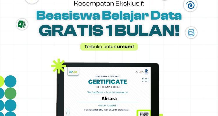 Untuk mendukung peningkatan literasi data, DQLab menawarkan program pembelajaran data science secara gratis. Program ini dirancang untuk membantu individu dari berbagai latar belakang memahami konsep dasar data science dan penerapannya. Dengan mengikuti program ini, Anda dapat memulai perjalanan menuju karier di bidang data yang menjanjikan.