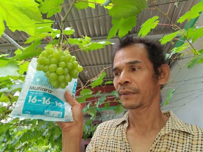 “Untuk pemakaian sudah ada cara yang dilengkapi dengan takarannya di kemasan pupuk tersebut, kami tinggal mengikuti. Jika benar dan teratur maka pohon akan tumbuh subur dan berbuah dengan baik. Untuk pohon anggur per pohon bisa menghasilkan 6-8 kilogram anggur, dengan masa tunggu panen 6-8 bulan, bahkan ada yang setahun 3 kali panen,” papar Madun.