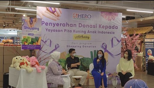Hero Supermarket memberikan donasi materil untuk mendukung program di Yayasan Pita Kuning yang fokus pada peningkatan kualitas hidup pasien anak dengan kanker dari keluarga prasejahtera di Indonesia, memberikan pendampingan psikososial berkala, menyalurkan dana bantuan kebutuhan bulanan, serta menyediakan akses konseling dan informasi atas kebutuhan perawatan paliatif.