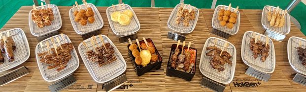 Hoka Kushiage: Olahan daging udang goreng dengan tusukan bambu.