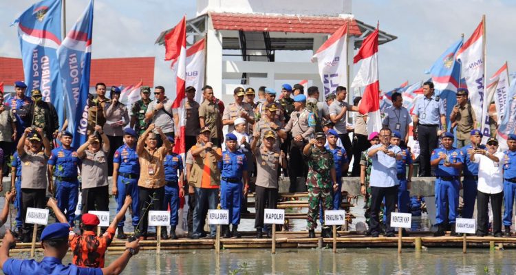 BESTTANGSEL.COM, TANGERANG- Kepala Kepolisian Republik Indonesia, Jenderal Polisi Idham Azis bersama, Panglima TNI Marsekal Hadi Tjahjanto, menanam dua puluh ribu pohon mangrove dan menyebar sepuluh ribu benih ikan dan udang, yang bertempat di Desa Ketapang, Kecamatan Mauk, Kabupaten Tangerang, Banten. Pada Jum’at, 21/2/2020.