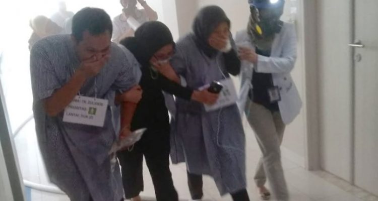 Itu sekilas gambaran simulasi bahaya kebakaran di RS Siloam Asri yang bertempat di Kelurahan Duren Tiga, Pancoran Jakarta Selatan, yang dilakukan pada Selasa, (29/10/2019). Pada pelatihan simulasi tersebut, RS Siloam Asri melibatkan 55 karyawan rumah sakit sebagai tim evakuasi dan pemadam api guna menyelamatkan 15 pasien yang terperangkap asap dilantai tersebut.