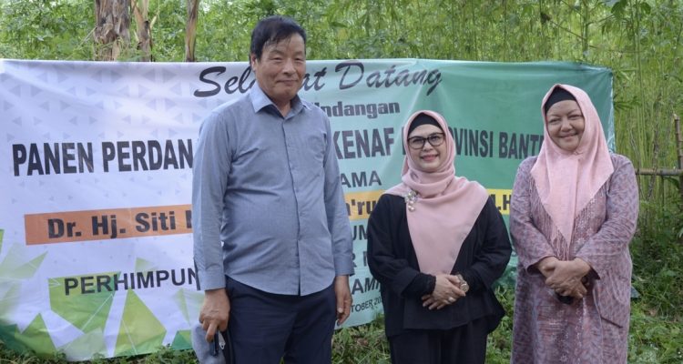 BESTTANGSEL.COM, SERANG BANTEN- Ketua Umum Perhimpunan Saudagar Muslimah Indonesia (Persami) Siti Nur Azizah ikut memanen perdana tanaman Kenaf di lahan seluas 30 hektare di Ciomas, Kabupaten Serang, Provinsi Banten, Senin (31/10/2022).
