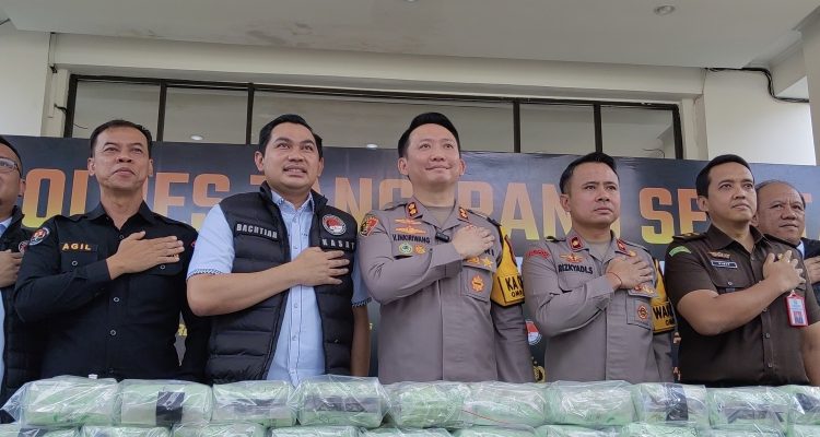 BESTTANGSEL.COM, TANGSEL – Sat Res Narkoba Polres Tangerang Selatan (Tangsel) berhasil menangkap komplotan pelaku pengedar Narkotika jenis Sabu sebanyak 40,2 Kg yang disimpan dalam bungkus teh bertuliskan Chinese Pin Wei senilai 80 miliar.