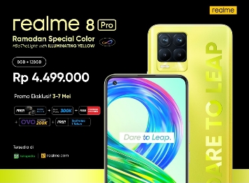 Anak muda bisa mendapatkan warna spesial Ramadan realme 8 Pro Illuminating Yellow 8GB+128GB dengan harga Rp 4,499,000 eksklusif hanya di Tokopedia mulai 3 Mei hingga 7 Mei dengan gratis realme Buds Q, gratis bundling Telkomsel Max, gratis Tec Protec 1 tahun, cashback OVO Points senilai Rp 200,000 per pengguna dan diskon Rp 300,000 dari mitra bank. Sementara realme Watch S Master Edition akan tersedia eksklusif di Tokopedia seharga Rp 999,000 dengan gratis Tec Protec 1 tahun dan cashback OVO Points senilai Rp 100,000 per pengguna mulai 3 Mei hingga 7 Mei. Cek lebih lanjut warna spesial Ramadan realme 8 Pro Illuminating Yellow dan realme Watch S Master Edition di Tokopedia. (Red/**)