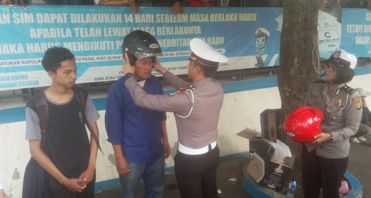 Kasat Lantas Polres Tangsel AKP Lalu Hedwin mengatakan, pembagian helm ini diperuntukan bagi para peserta atau pemohon SIM yang lulus mengikuti ujian teori dan praktek.
