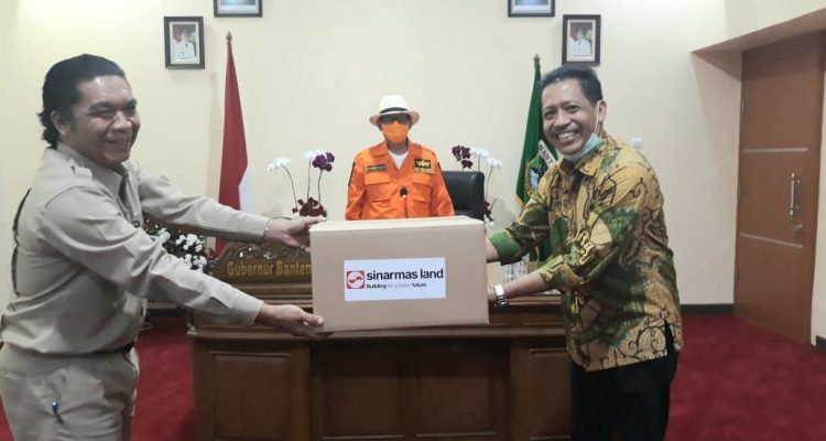 Pada kali ini, bantuan APD itu diberikan untuk Provinsi Banten. Kepala Divisi Corporate Affairs Sinar Mas Land, Dony Martadisata, memberikan bantuan tersebut secara langsung kepada Sekretaris Daerah Provinsi Banten, Dr Al Muktabar MSc, di rumah dinas Gubernur Banten, Jalan Raya Ahmad Yani, Serang, Selasa (31/3/2020). Satu set bantuan berisi berbagai APD, yakni baju hazard, masker N95, sepatu bot, kacamata goggle mask, dan gloves rubber.
