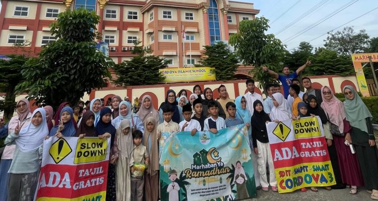 Kegiatan digelar dalam rangka iftar on the road siswa siswi kelas 4 dan kelas 10 SIT Cordova 3 berbagi makanan untuk berbuka puasa bagi pengendara di Jalan Raya.