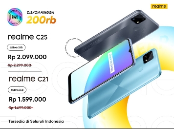 BESTTANGSEL.COM, JAKARTA- realme, merek smartphone Favoritnya Anak Muda di Indonesia hari ini mengumumkan harga baru untuk dua smartphone entry-level tahan banting realme C21 dan realme C25. Mulai hari ini, anak muda di Indonesia dapat memiliki realme C21 (3GB+32GB) dengan harga Rp 1,599,000. Sementara itu, realme C25 (4GB+64GB) memiliki harga baru Rp 2,099,000.