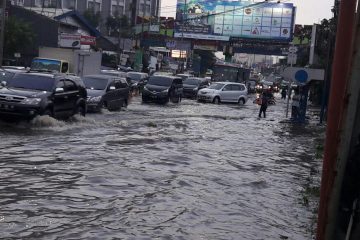 BESTTANGSEL.COM- Jalan Raya Alam Sutera-BSD, Tangerang Selatan yang mengarah ke Serpong sempat lumpuh akibat tergenang banjir usai di guyur hujan deras, Senin (24/10/2016).