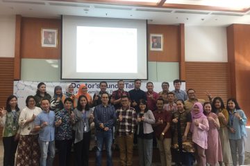 dr Anggie Novaldy, Sp.U (depan kemeja garis-garis biru), berfoto bersama para dokter yang hadir pada acara Doctor's Lunch Talk Siloam Hospitals TB Simatupang, (27/2).