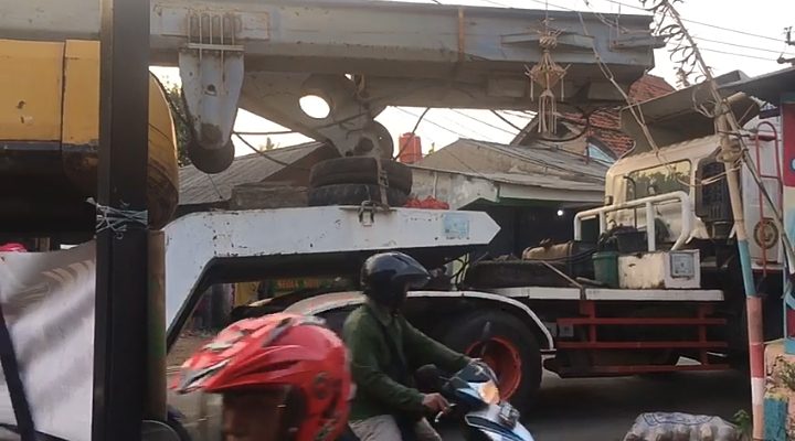 BESTTANGSEL.COM, TANGERANG SELATAN – Sebuah truk pengangkut crane terperosok di jalan Raya Serua, Ciputat, Tangerang Selatan, Kamis, (13/9/2018) pagi.