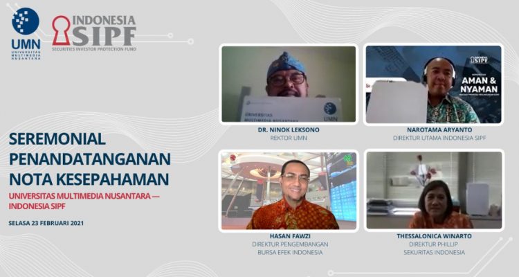 Menindaklanjuti kesepakatan yang telah terjalin antara UMN dan Indonesia SIPF dalam program CSR&S tersebut, dilaksanakan seremonial penandatanganan Nota Kesepahaman antara UMN dan Indonesia SIPF secara daring pada Selasa (23/2).